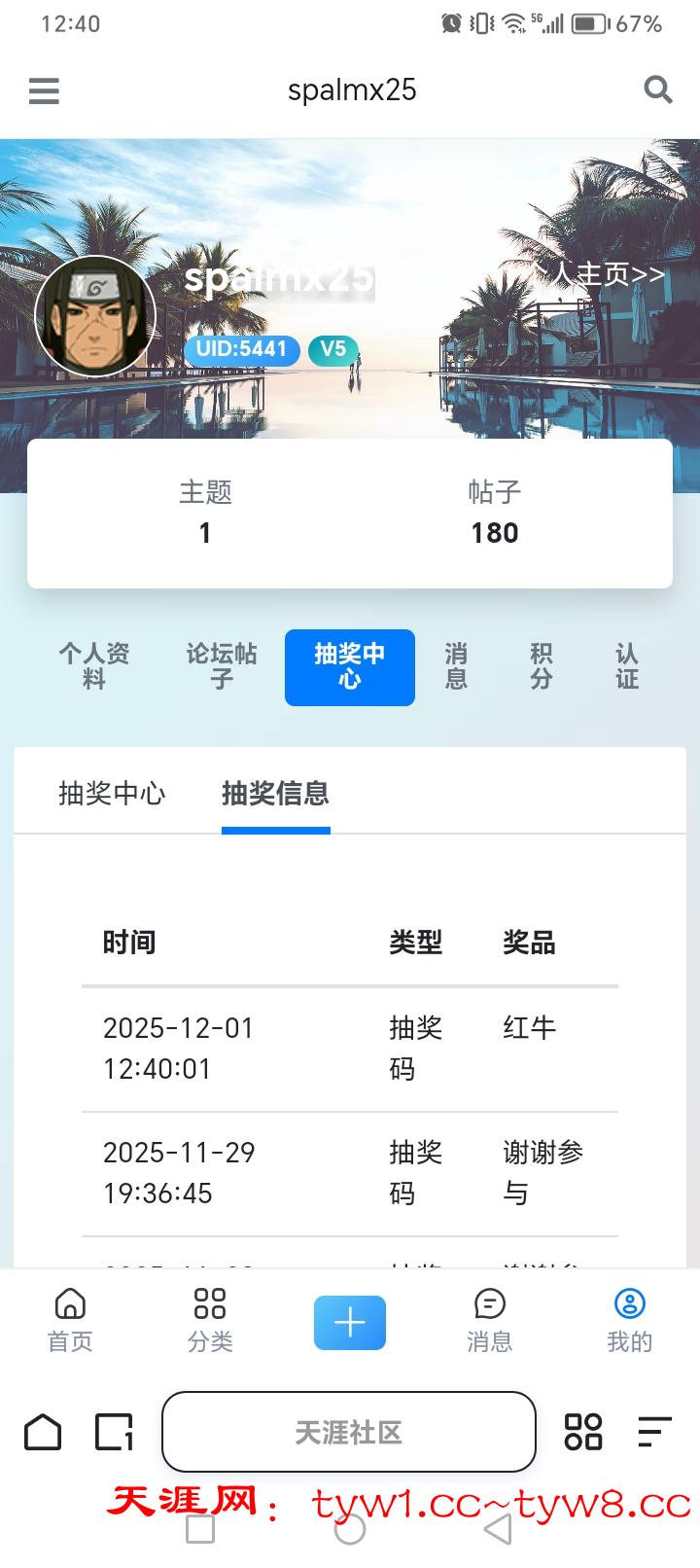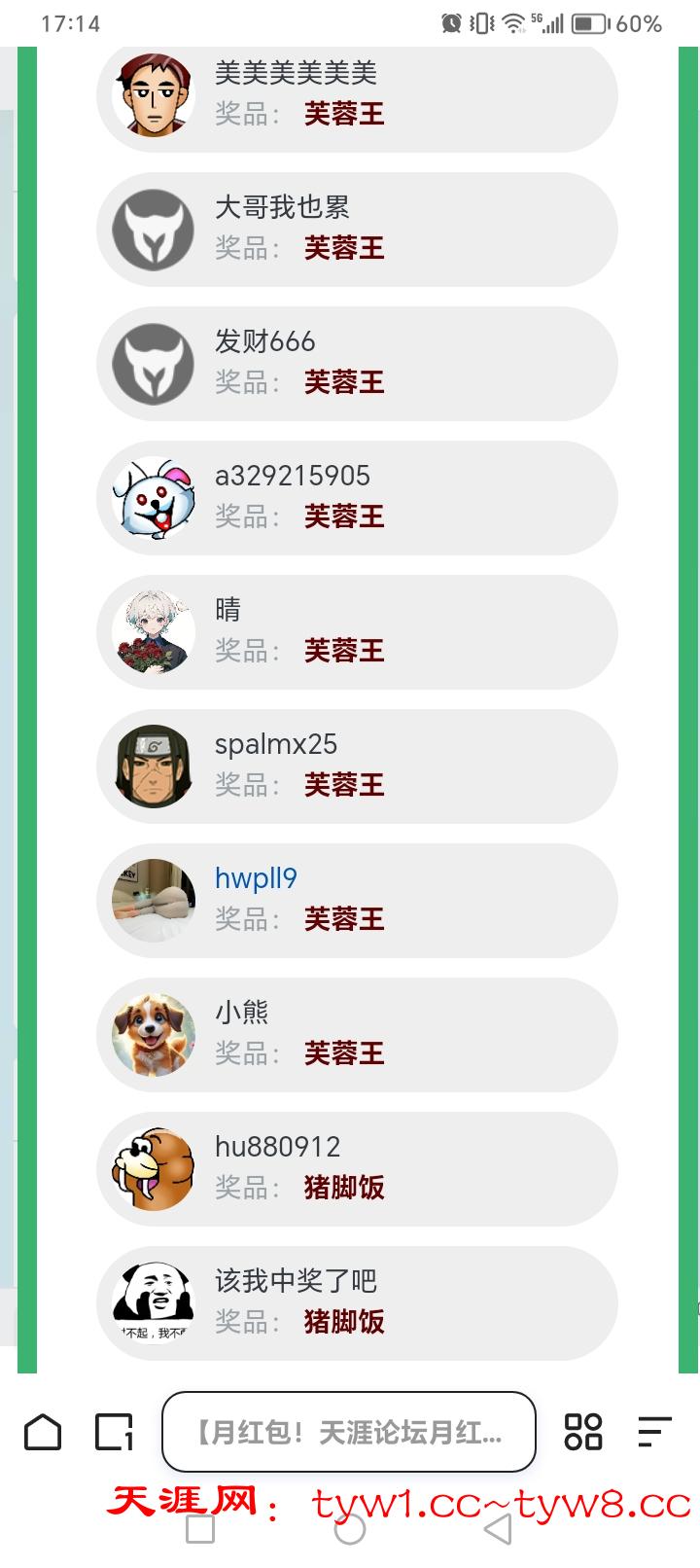 天涯中奖