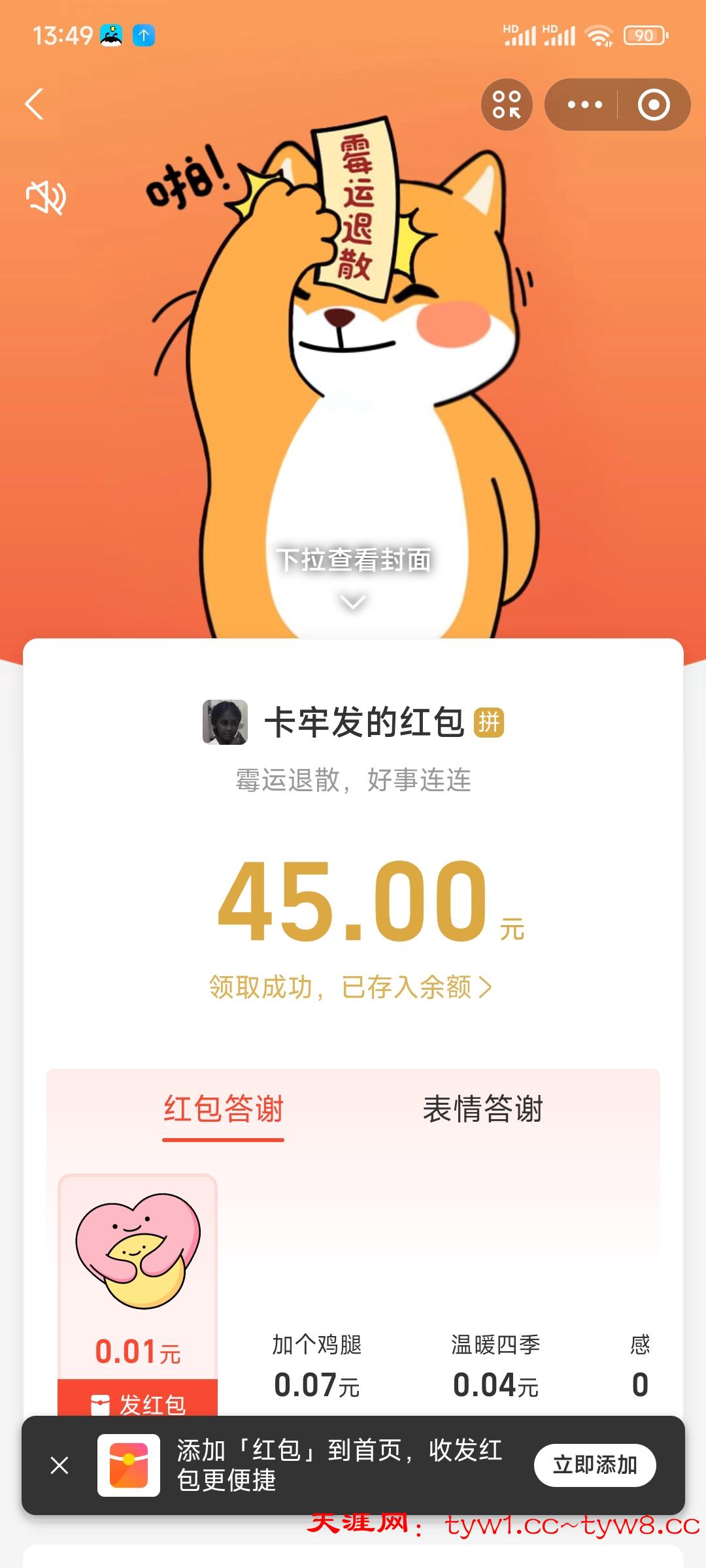 华子到账,支持天涯。