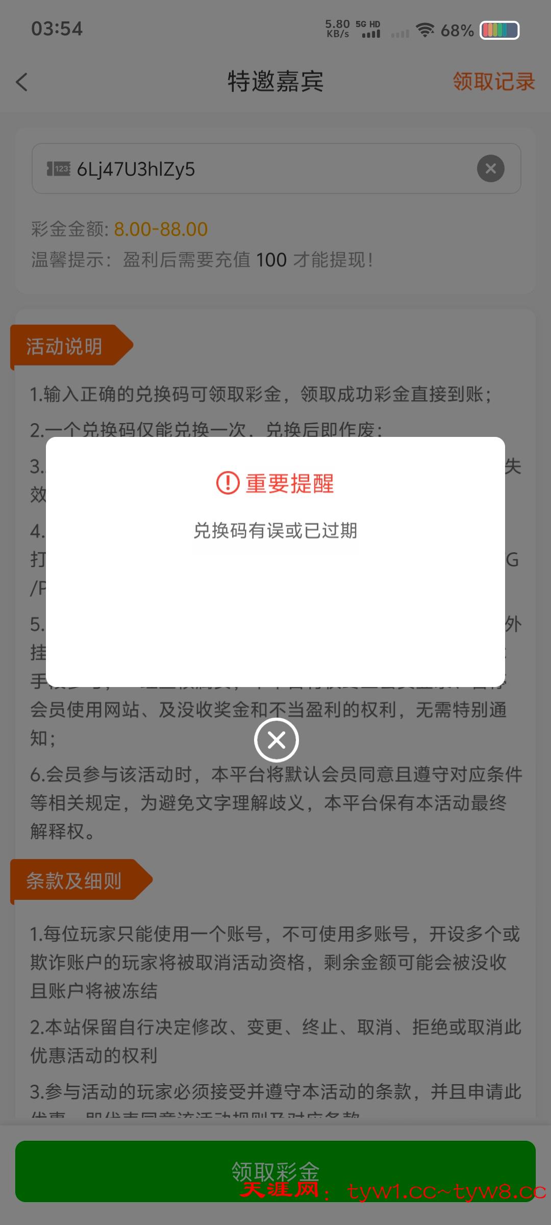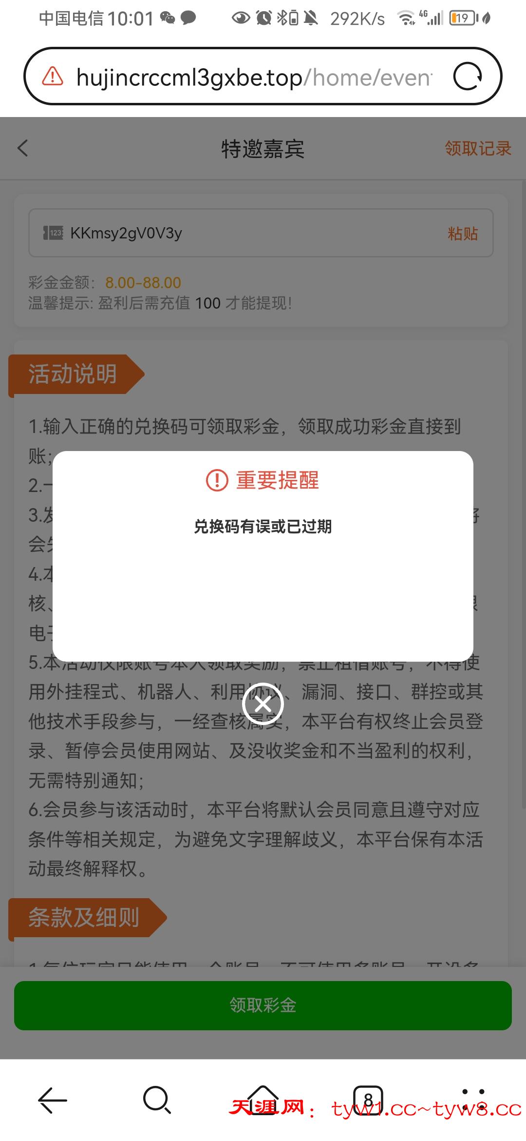兑换码错误