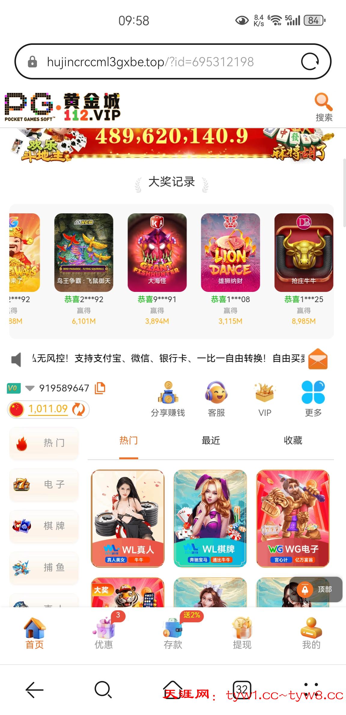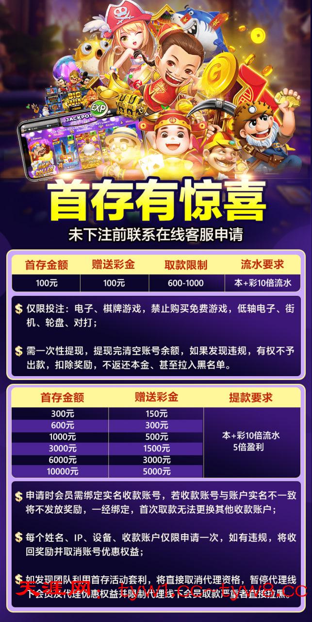 限制:1水,电子、棋牌、捕鱼