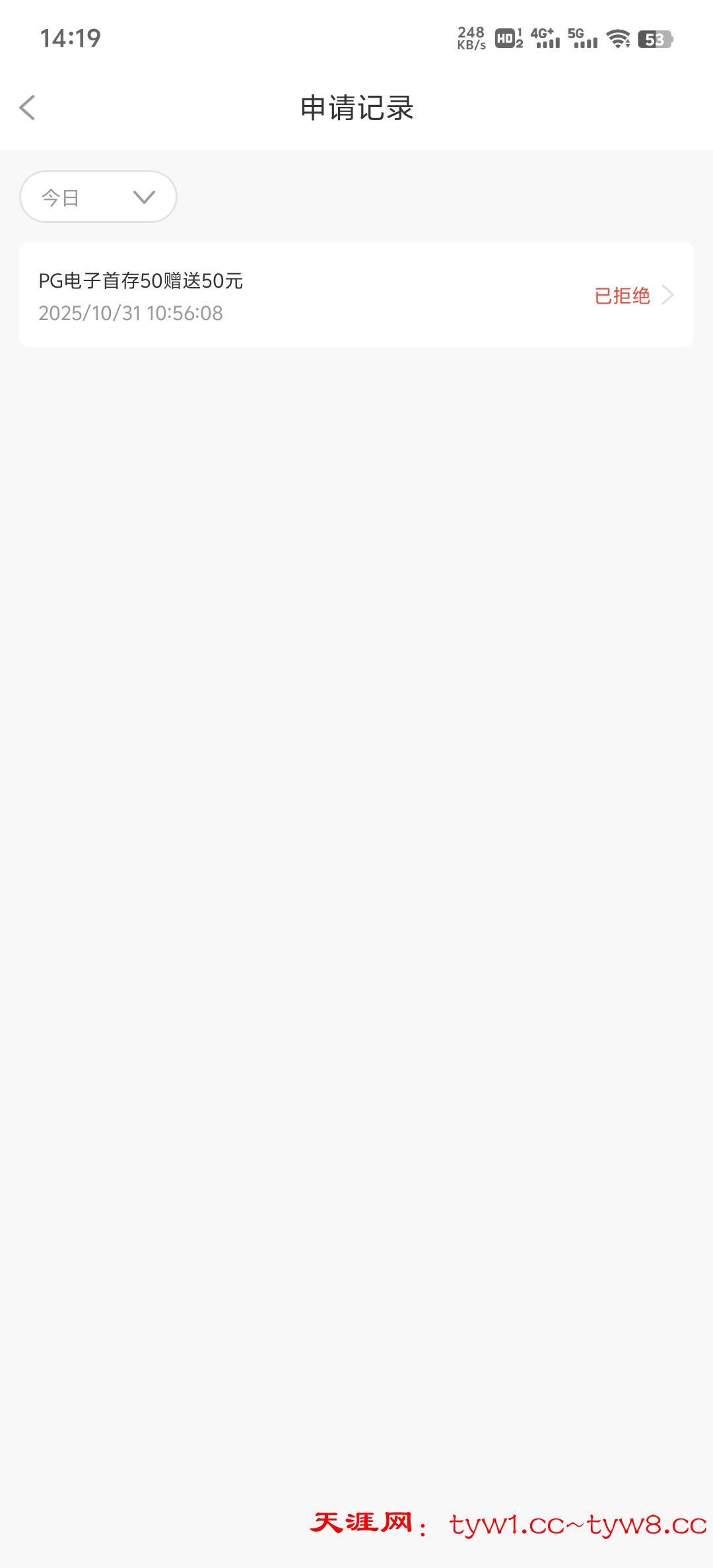 天涯社区永利大水,本来想申请50+50,结果被拒绝了,50块钱赢1千美滋滋