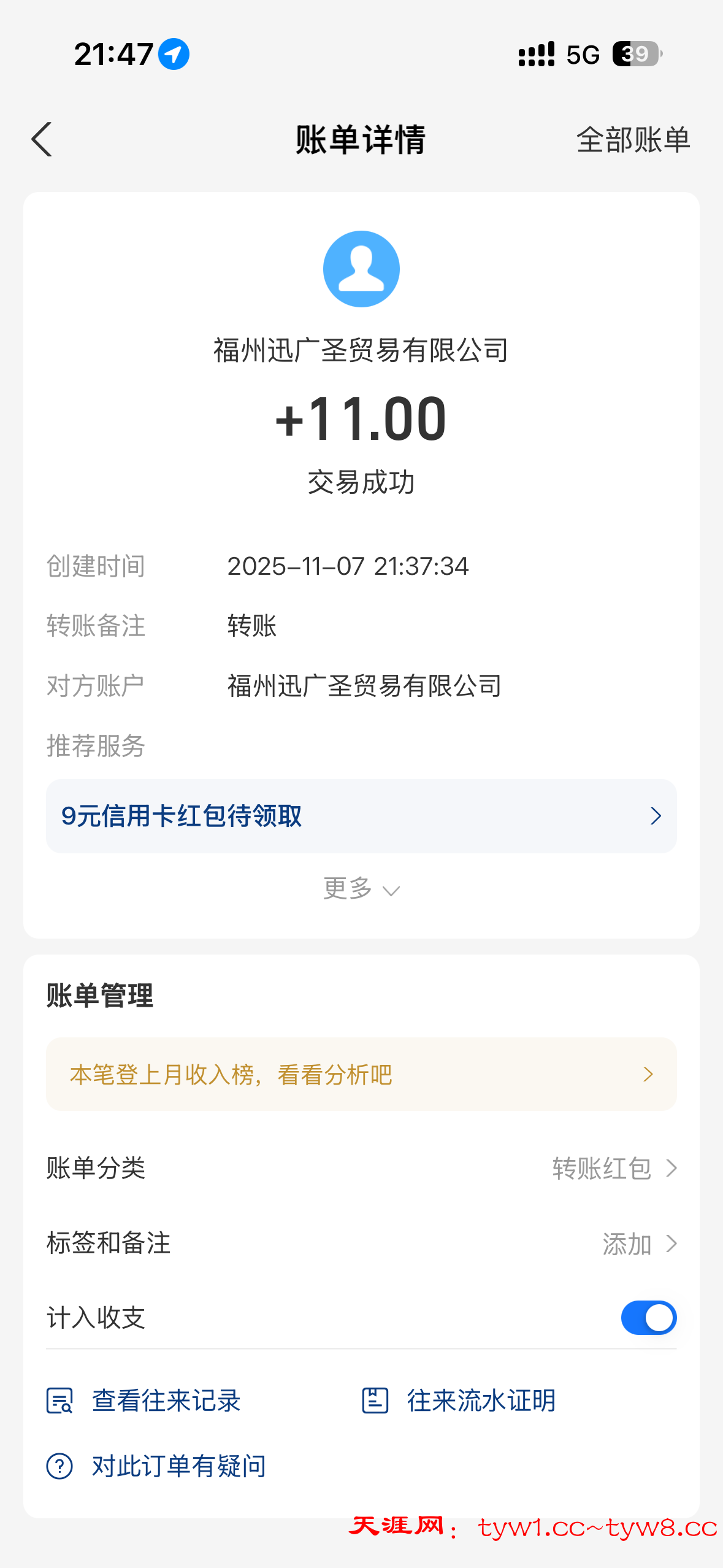 到账了