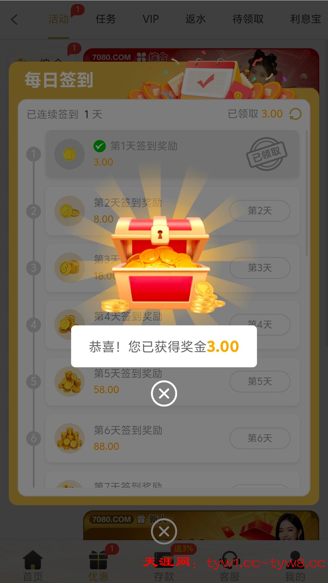 签到3块钱提了100 秒到