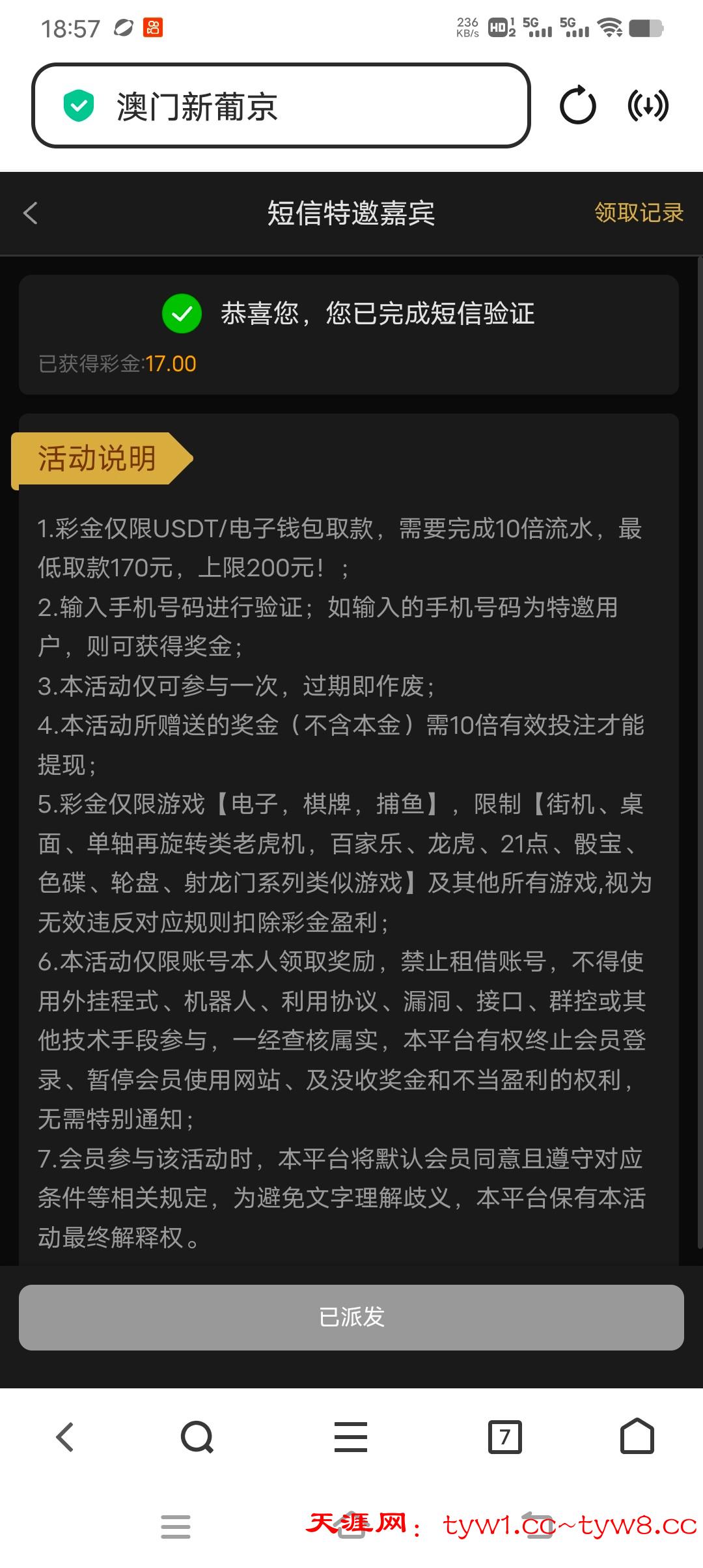 收到短信去的 没有收到可以去碰瓷看看