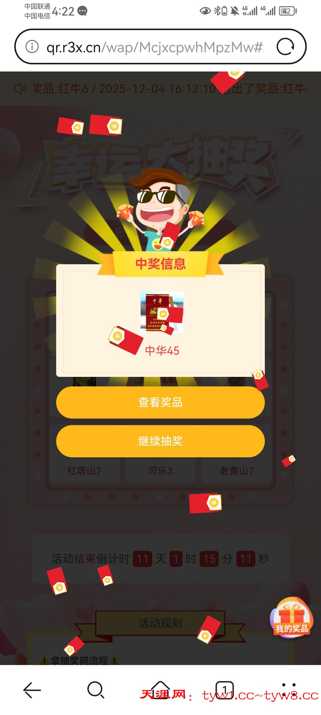 转盘抽了好多天了,之前都是牛子什么的,今天突然来个3华子,动动手指吃135,不说其他的了,天涯牛逼,支持就完了