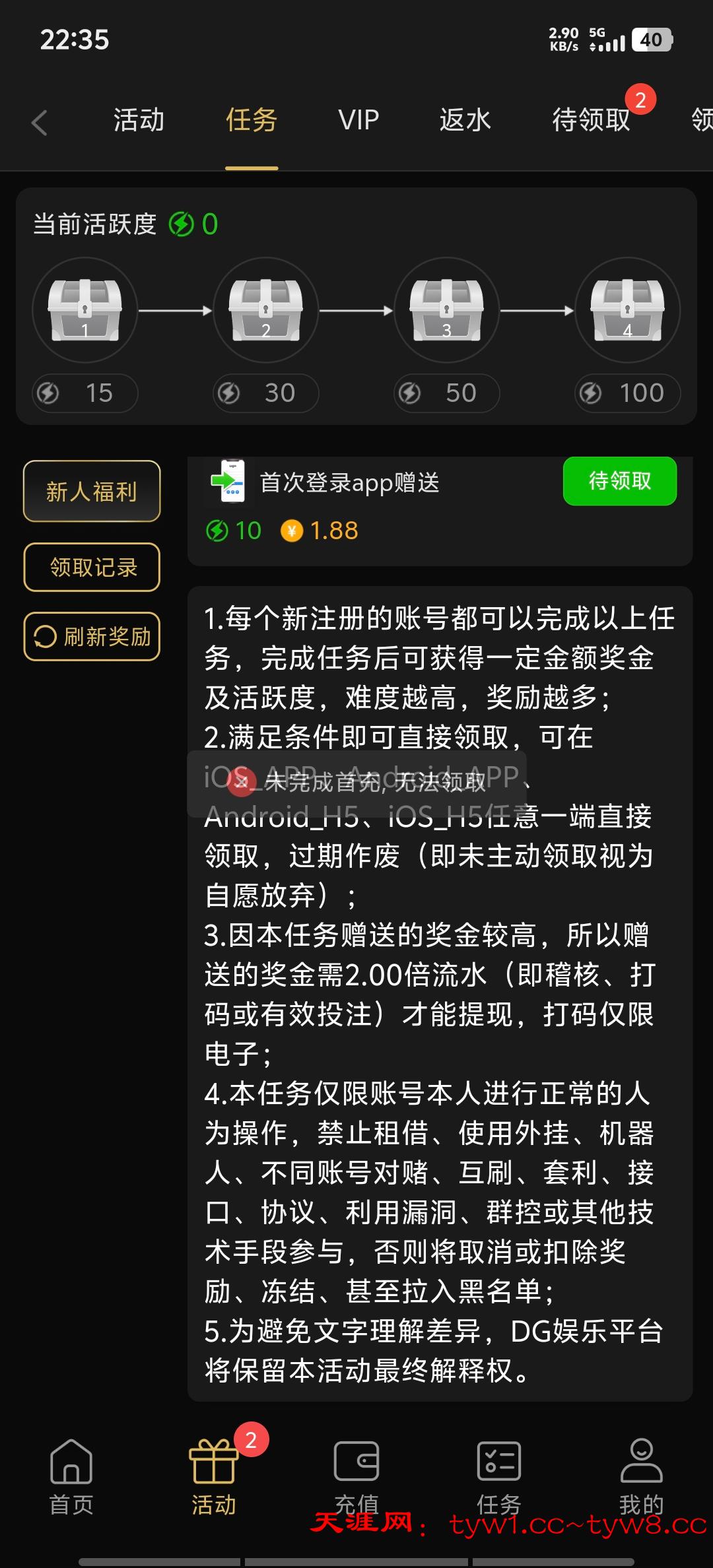 注册送任务里自助领取5.6 赌神项目